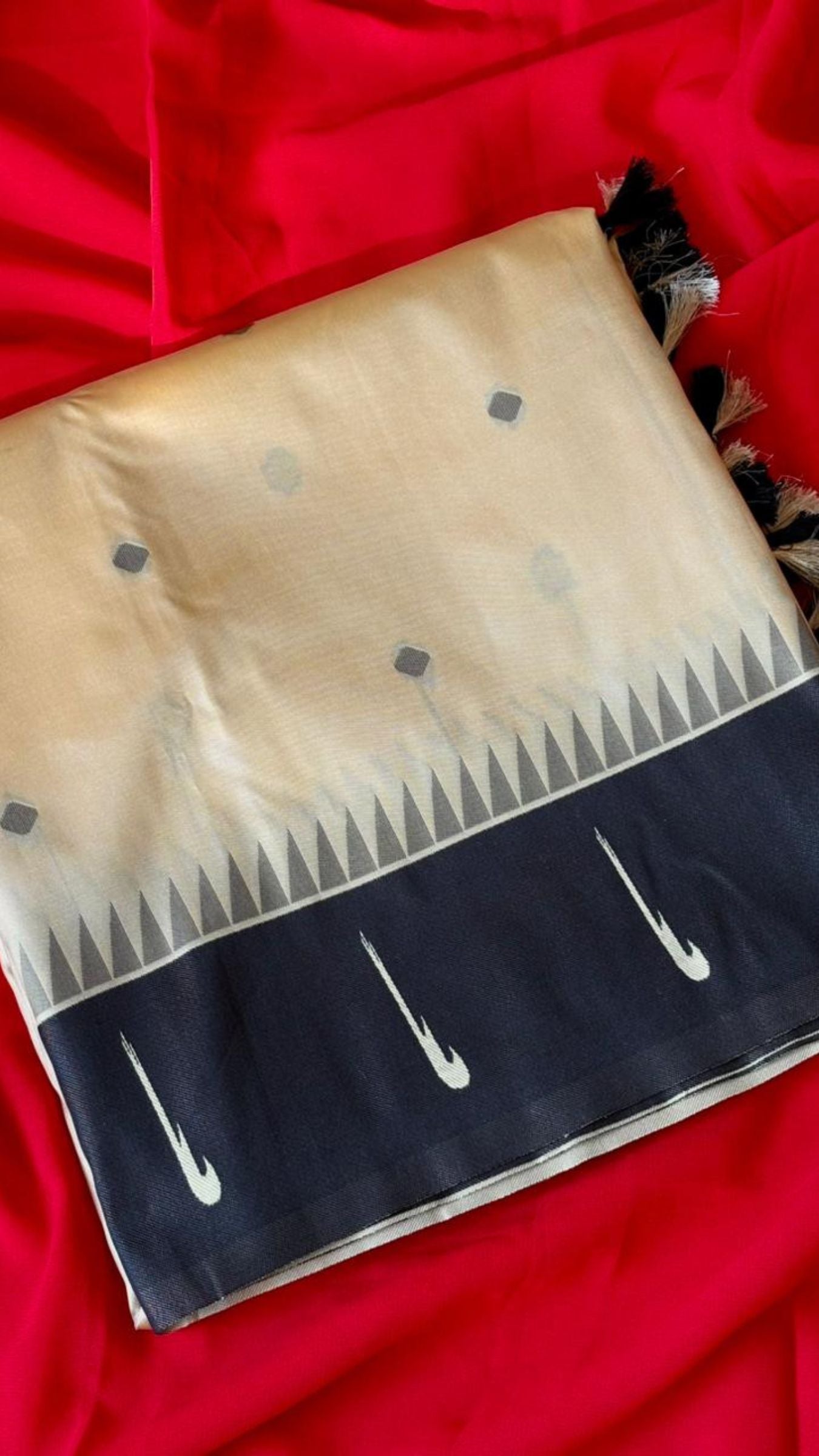 ➤ Saree Color: Cream & Mustard with Black Border