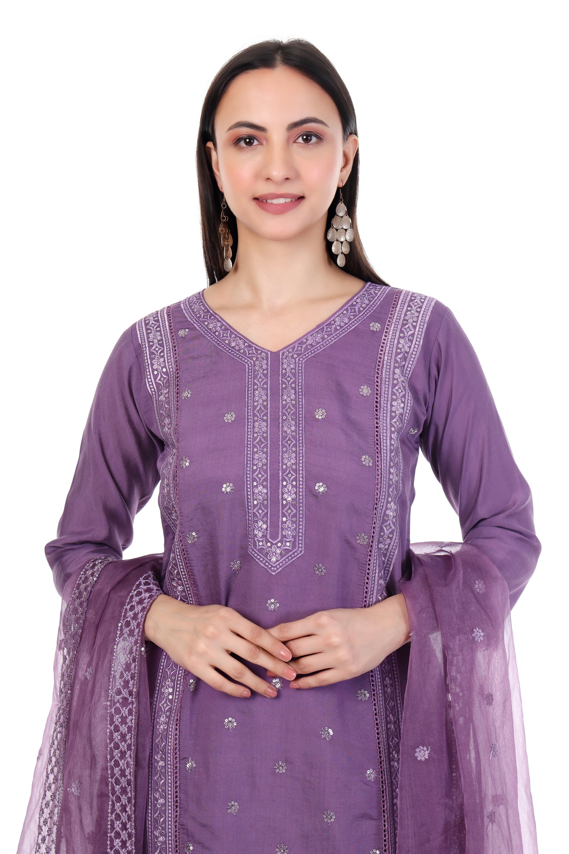 Elevate your festive style with this Premium Lavender Embroidered Kurta Set, featuring delicate threadwork, floral motifs, and a beautifully crafted organza dupatta. The soft, breathable fabric ensures all-day comfort, while the elegant straight-cut design adds a graceful, modern touch. Perfect for festive occasions, family functions, and partywear events, this outfit blends tradition with effortless sophistication.