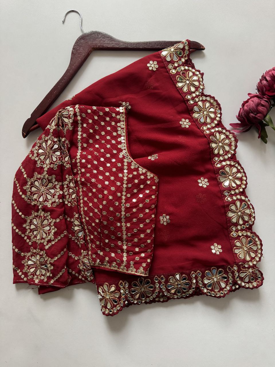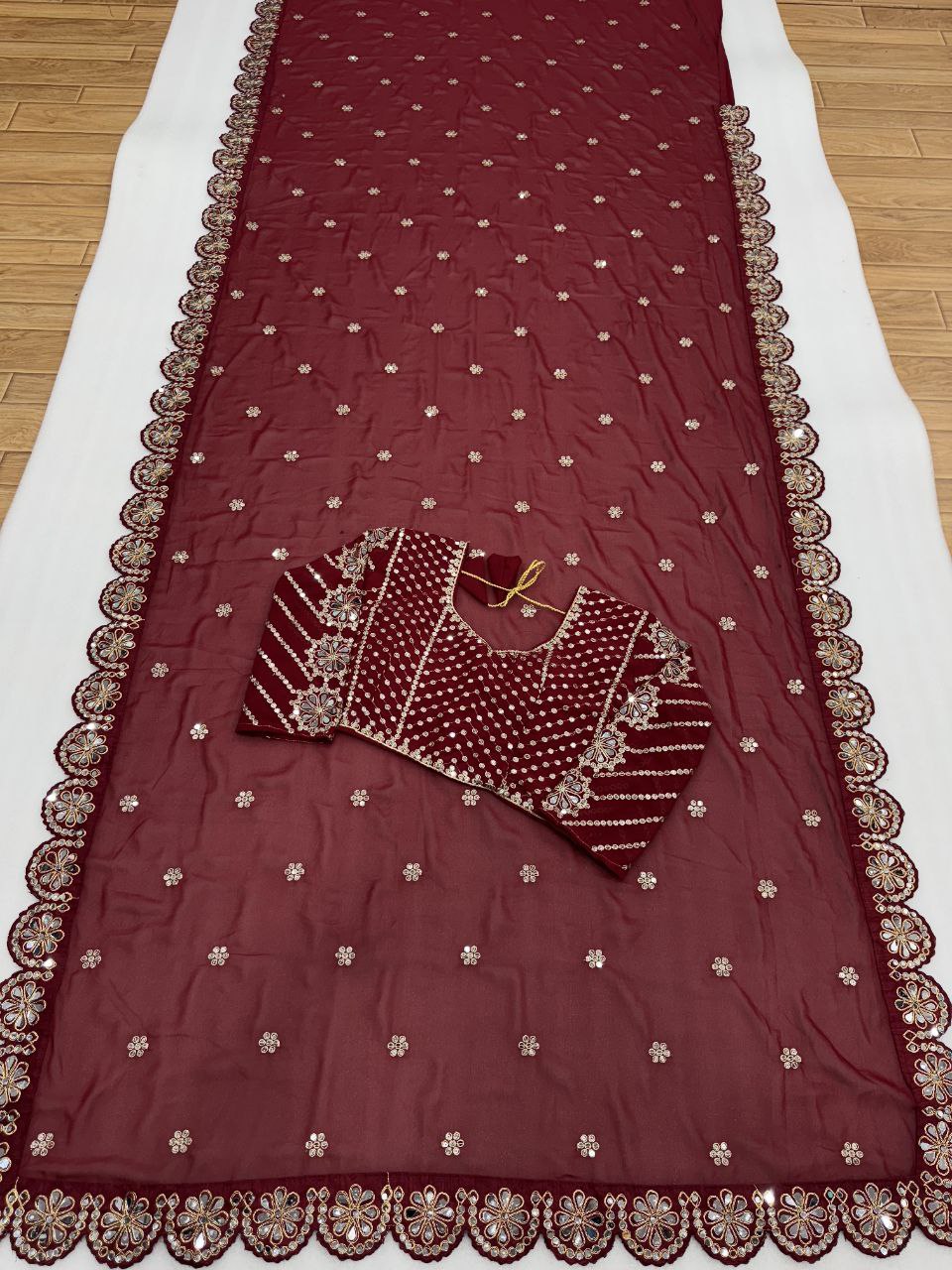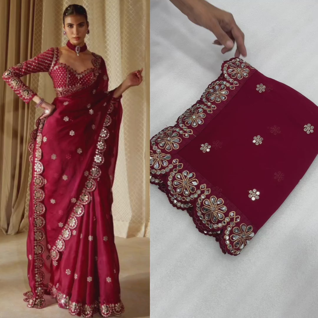 SLEEVES WITH EMBROIDERY WORK WITH ORIGINAL HANDWORK MIRROR