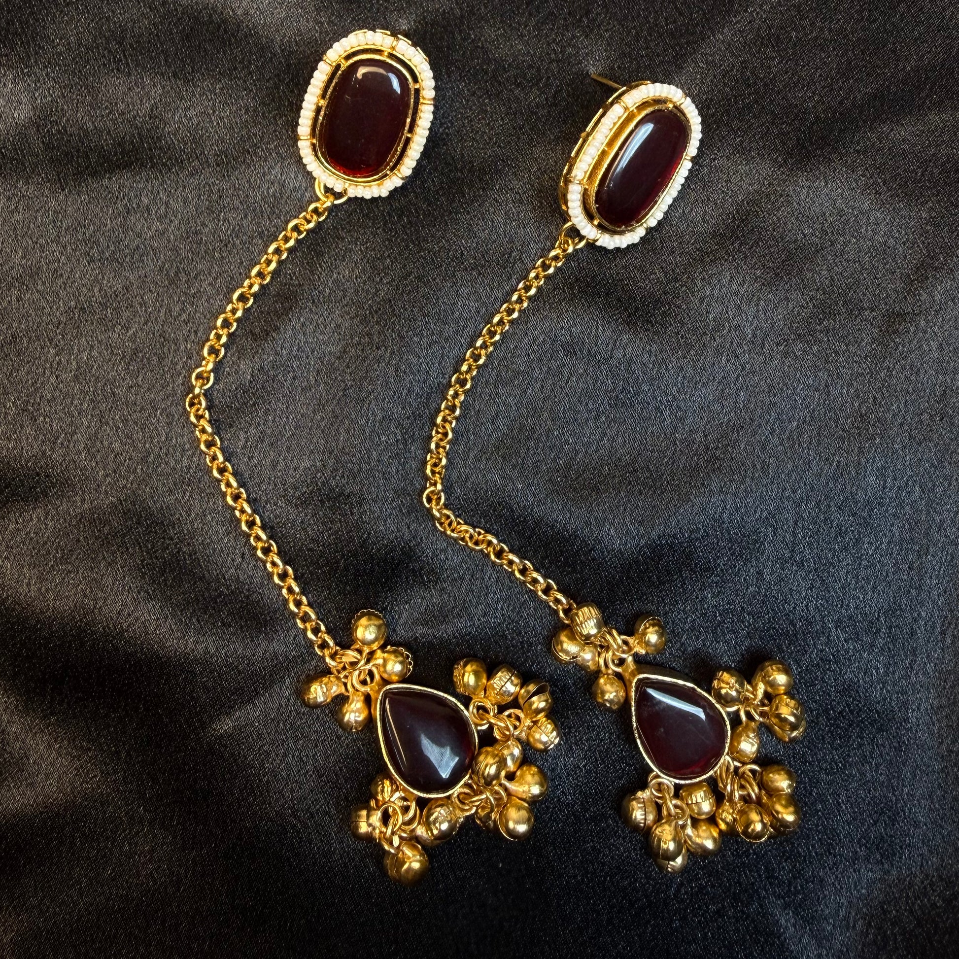 Premium Kashmiri Brass Long Chain Earrings with Ghungroo Drops
