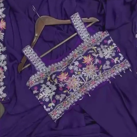 Purple Ready-to-Wear Chinon Saree with Embroidered Koti Jacket & Banglori Silk Blouse
