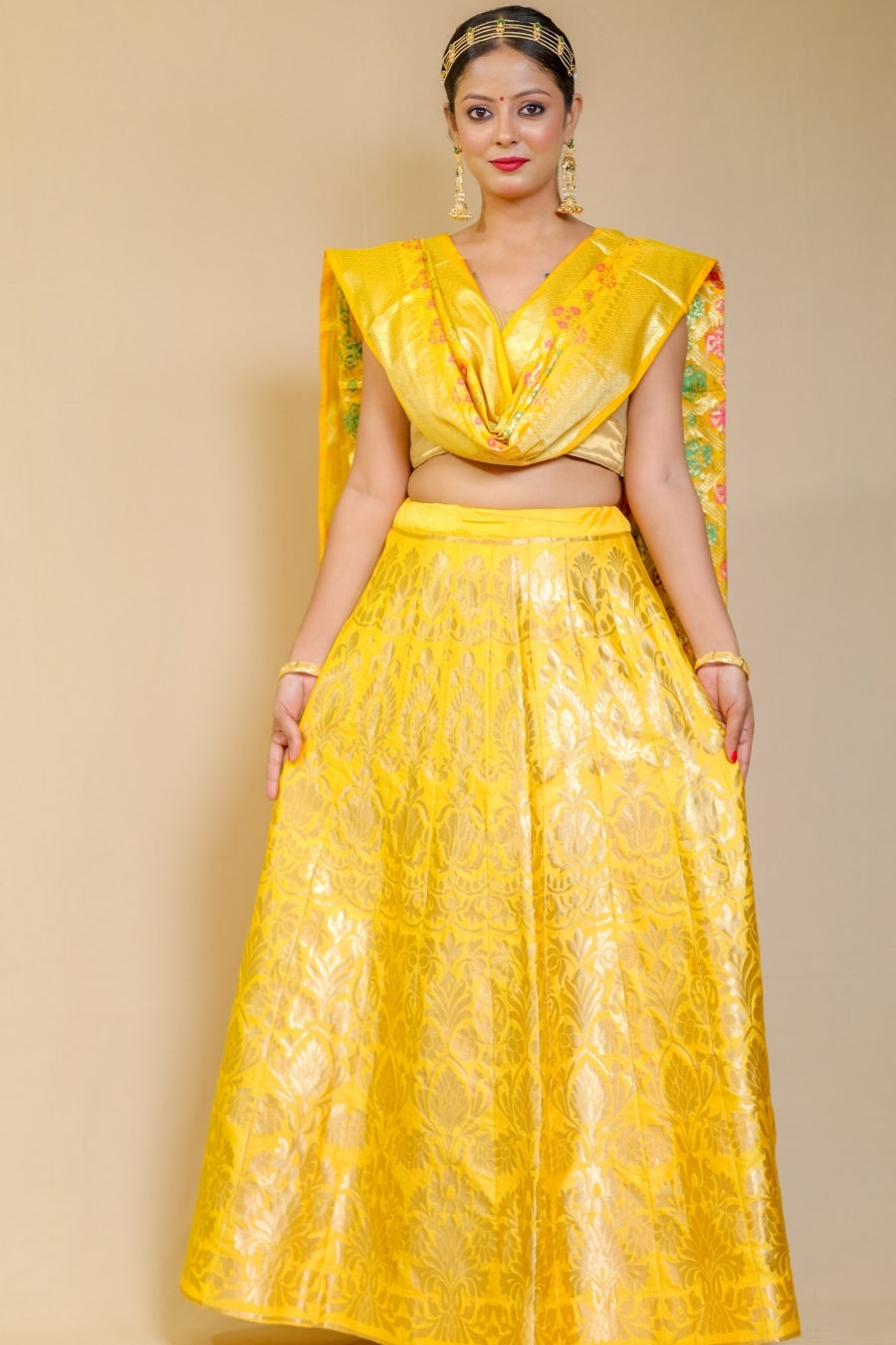 Radiant Marigold Yellow Banarashe Pure Silk Lehenga Set