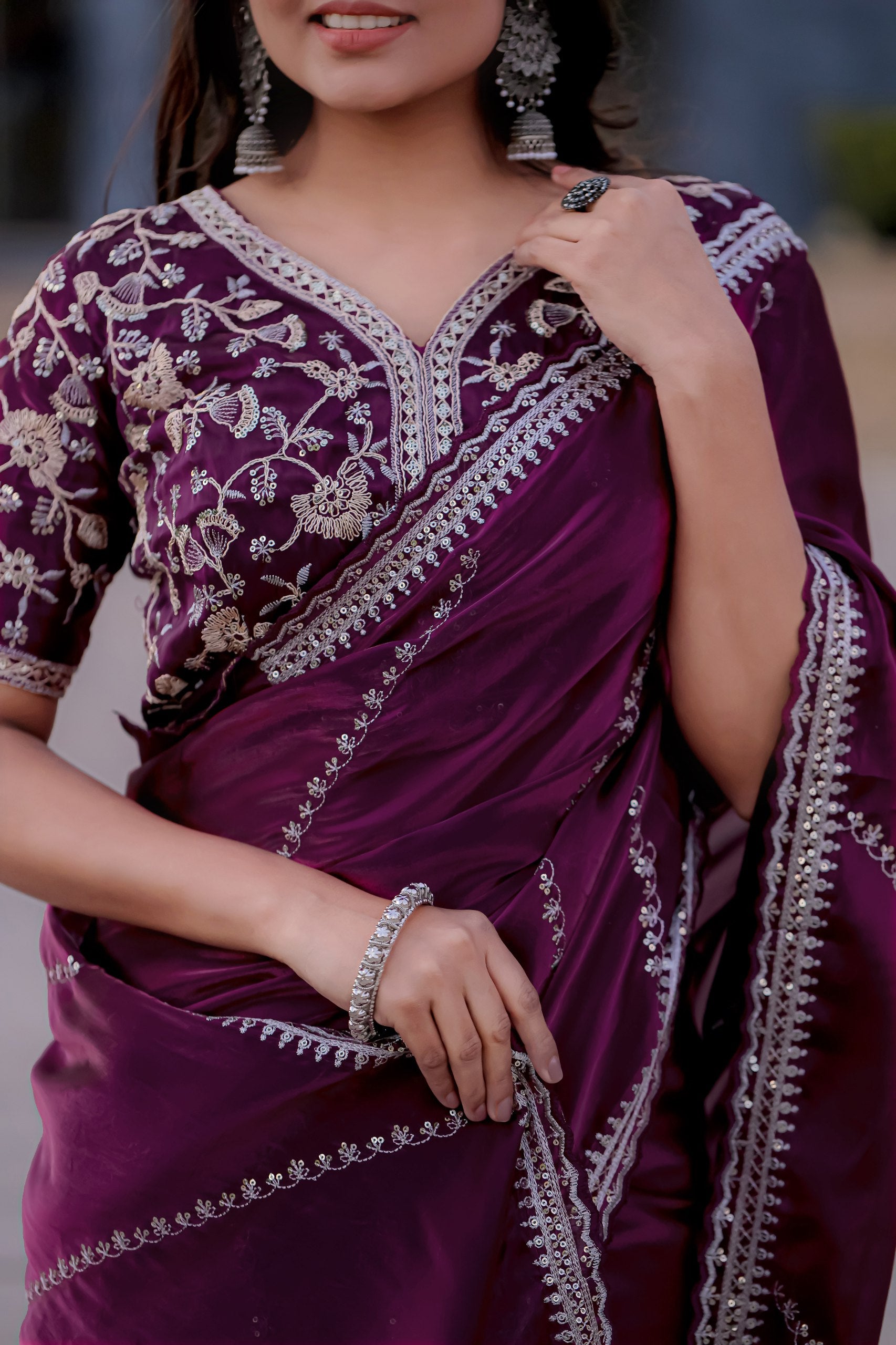 Pure soft zimmy choo silk sarees with amazing 3 mm sequence work with cut work border