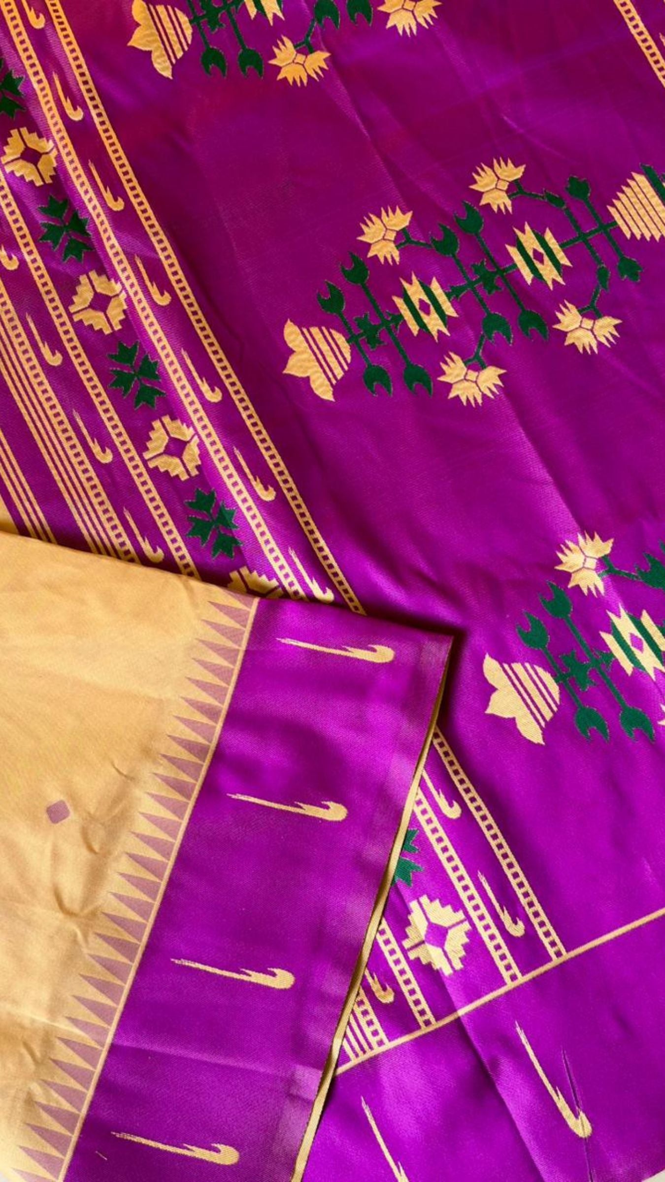 Royal Purple & Beige Handloom Soft Silk Saree